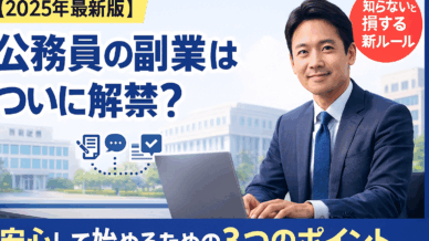 仕事・副業について 【2025年最新版】公務員の副業はついに解禁?正しく始めるための3つのポイント 「副業に興味はあるけれど、公務員はやっぱりダメなんじゃ…」と感じていませんか? 実は今、公務員の働き方をめぐる常識が大きく変わりつつあります。 それは、「副業の解禁」です。 かつて“副業禁止”が当たり... 2025.11.23 仕事・副業について