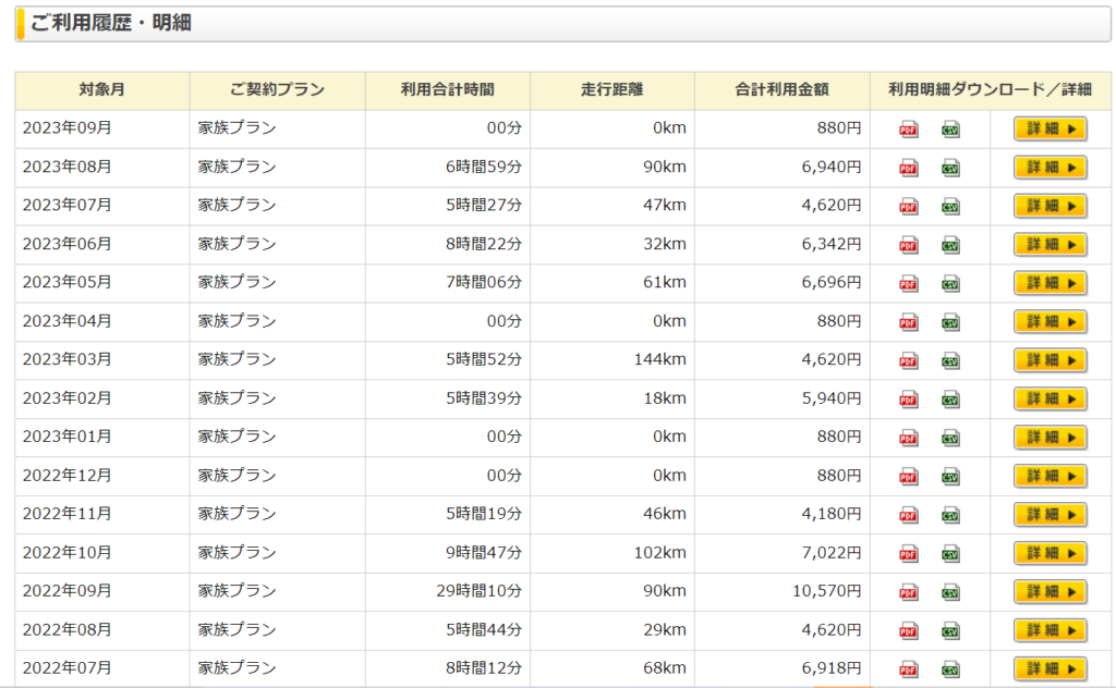 実際の我が家の利用履歴はこんな感じ。↓↓